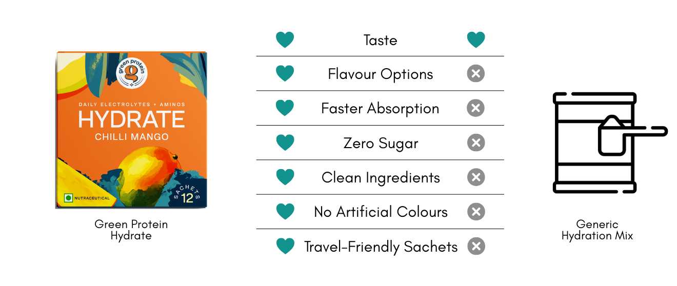 Hydrate goes beyond quenching thirst. It helps your body perform, recover, and feel its best every day. Made with real coconut powder, 3X Vital Electrolytes, and all 9 EAAs, it replenishes what you lose through sweat, boosts endurance, and supports muscle recovery without the added dextrose found in most ORS powders.