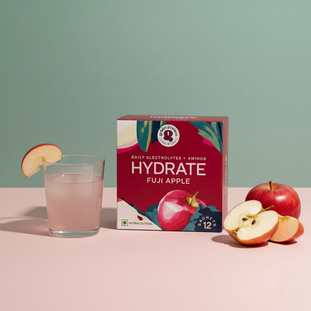 Enjoy Hydrate’s crisp Fuji Apple flavour, clean and refreshing for workouts, travel, or long days on the go.