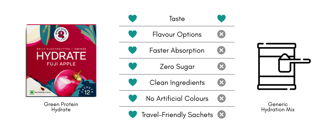 Hydrate goes beyond quenching thirst. It helps your body perform, recover, and feel its best every day. Made with real coconut powder, 3X Vital Electrolytes, and all 9 EAAs, it replenishes what you lose through sweat, boosts endurance, and supports muscle recovery without the added dextrose found in most ORS powders.