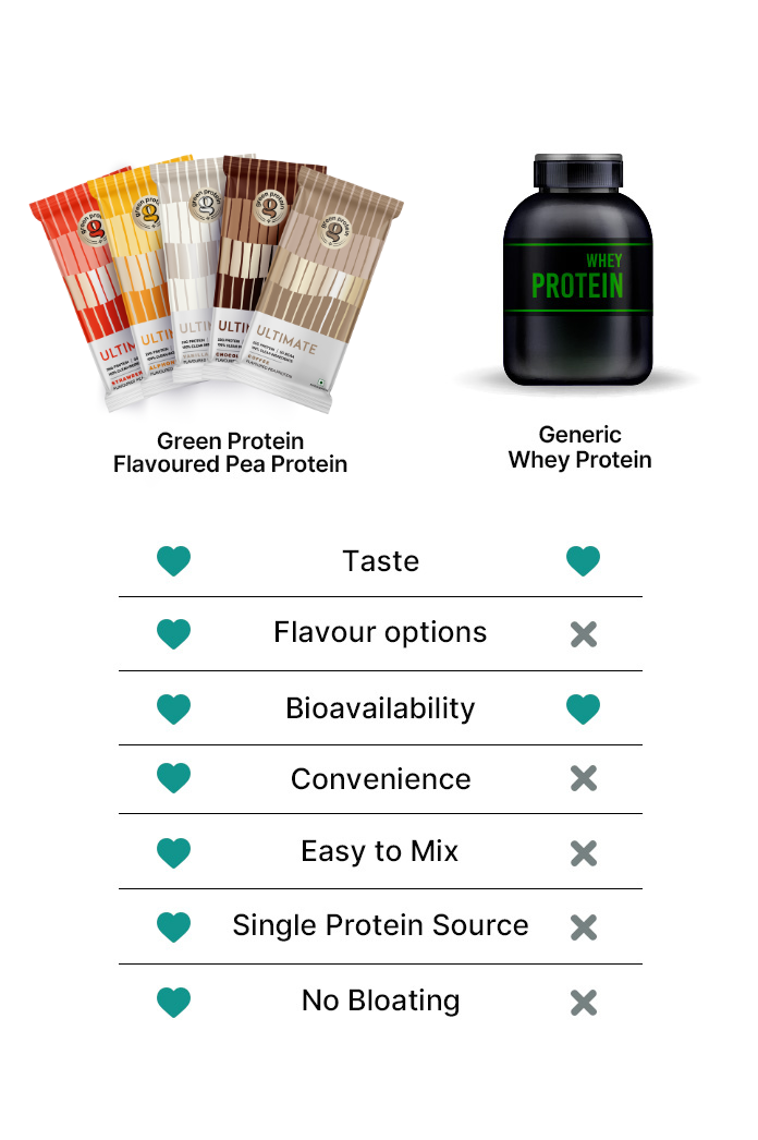 However, compared to other plant-based protein options, Green Protein stands out for its superior quality. Most other brands, use a blend of multiple protein sources, resulting in a chalkier texture and poor absorption or bioavailability. Green Protein utilizes Canadian Pea Protein Isolate, known for its easier digestibility and higher absorption rates. Although you may notice a slight difference in texture compared to traditional proteins, rest assured that Green Protein prioritizes taste and efficacy. For optimal results, mix it with cold water and consume immediately. Plus, with Green Protein, you won't experience the bloating often associated with other protein supplements.