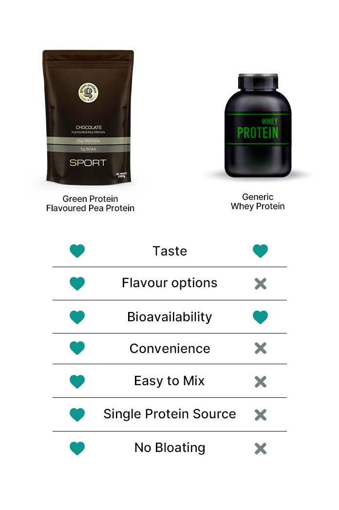 However, compared to other plant-based protein options, Green Protein stands out for its superior quality. Most other brands, use a blend of multiple protein sources, resulting in a chalkier texture and poor absorption or bioavailability. Green Protein utilizes Canadian Pea Protein Isolate, known for its easier digestibility and higher absorption rates. Although you may notice a slight difference in texture compared to traditional proteins, rest assured that Green Protein prioritizes taste and efficacy. For optimal results, mix it with cold water and consume immediately. Plus, with Green Protein, you won't experience the bloating often associated with other protein supplements.