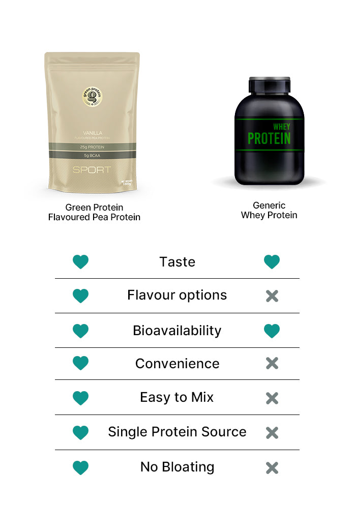 However, compared to other plant-based protein options, Green Protein stands out for its superior quality. Most other brands, use a blend of multiple protein sources, resulting in a chalkier texture and poor absorption or bioavailability. Green Protein utilizes Canadian Pea Protein Isolate, known for its easier digestibility and higher absorption rates. Although you may notice a slight difference in texture compared to traditional proteins, rest assured that Green Protein prioritizes taste and efficacy. For optimal results, mix it with cold water and consume immediately. Plus, with Green Protein, you won't experience the bloating often associated with other protein supplements.