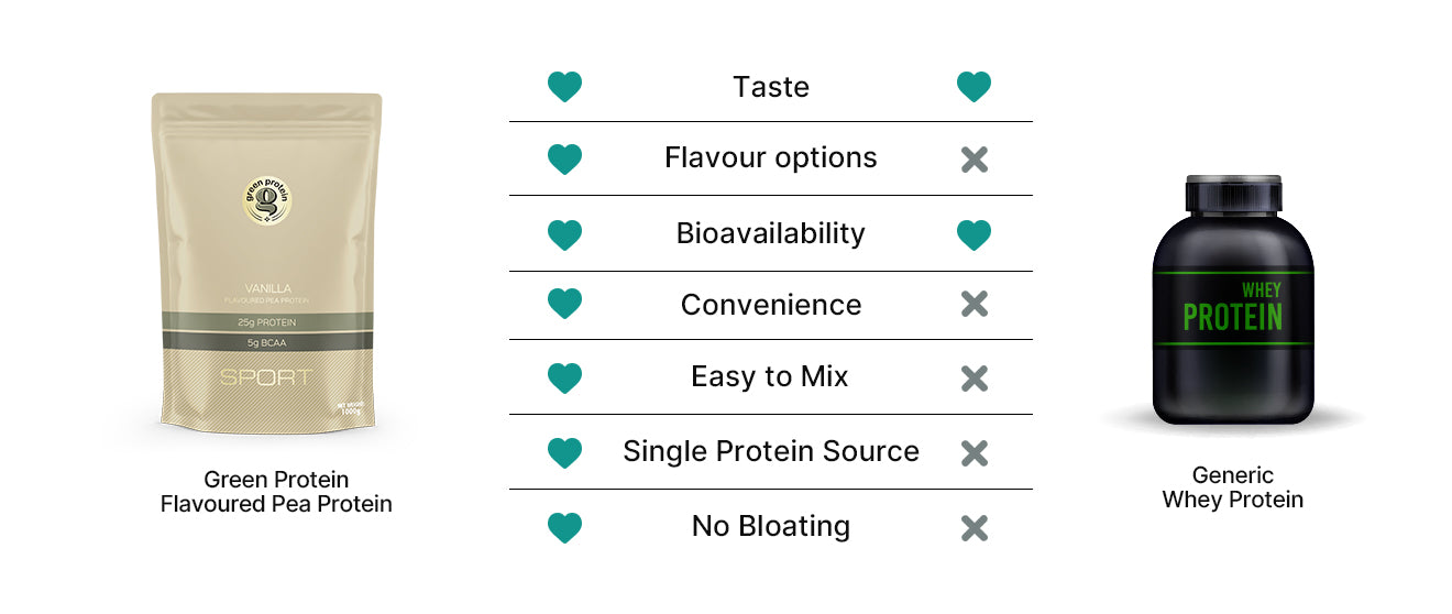 Green Protein's focus on single-source pea protein isolate sets it apart. This translates to superior bioavailability (93%) and a PDCAAS score of 0.93, rivalling whey protein for results while remaining true to vegan principles. In contrast, many plant protein blends rely on combinations of pea, rice, and other sources, often leading to lower bioavailability (65-70% only) and potentially less optimal results. Green Protein's Sport & Ultimate options are excellent for muscle building and intense physical activity due to this higher protein absorption.