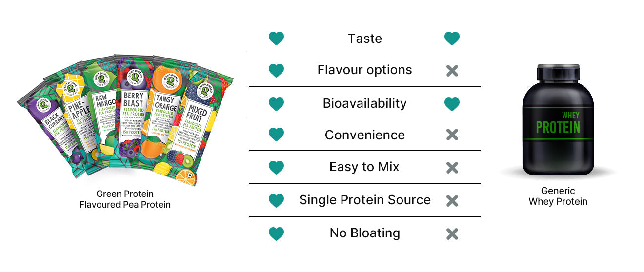 However, compared to other plant-based protein options, Green Protein stands out for its superior quality. Most other brands, use a blend of multiple protein sources, resulting in a chalkier texture and poor absorption or bioavailability. Green Protein utilizes Canadian Pea Protein Isolate, known for its easier digestibility and higher absorption rates. Although you may notice a slight difference in texture compared to traditional proteins, rest assured that Green Protein prioritizes taste and efficacy. For optimal results, mix it with cold water and consume immediately. Plus, with Green Protein, you won't experience the bloating often associated with other protein supplements.