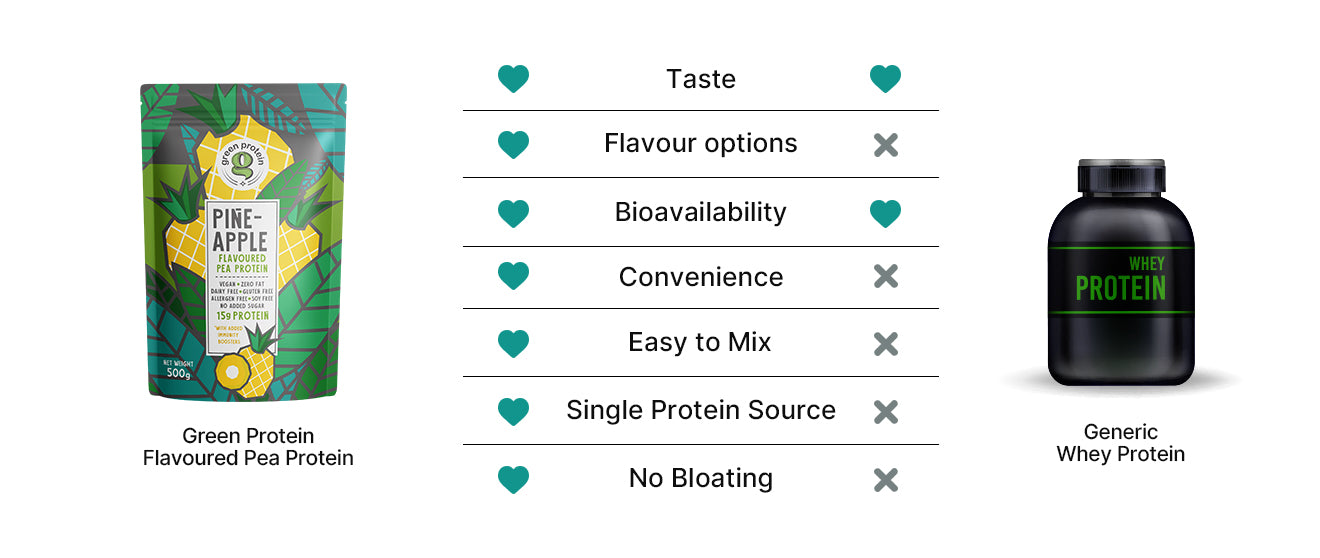 Green Protein's focus on single-source pea protein isolate sets it apart. This translates to superior bioavailability (93%) and a PDCAAS score of 0.93, rivalling whey protein for results while remaining true to vegan principles. In contrast, many plant protein blends rely on combinations of pea, rice, and other sources, often leading to lower bioavailability (65-70% only) and potentially less optimal results. Green Protein's Sport & Ultimate options are excellent for muscle building and intense physical activity due to this higher protein absorption.