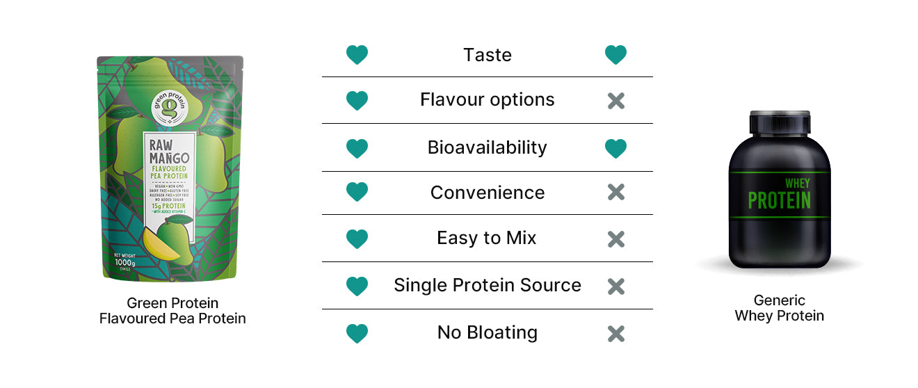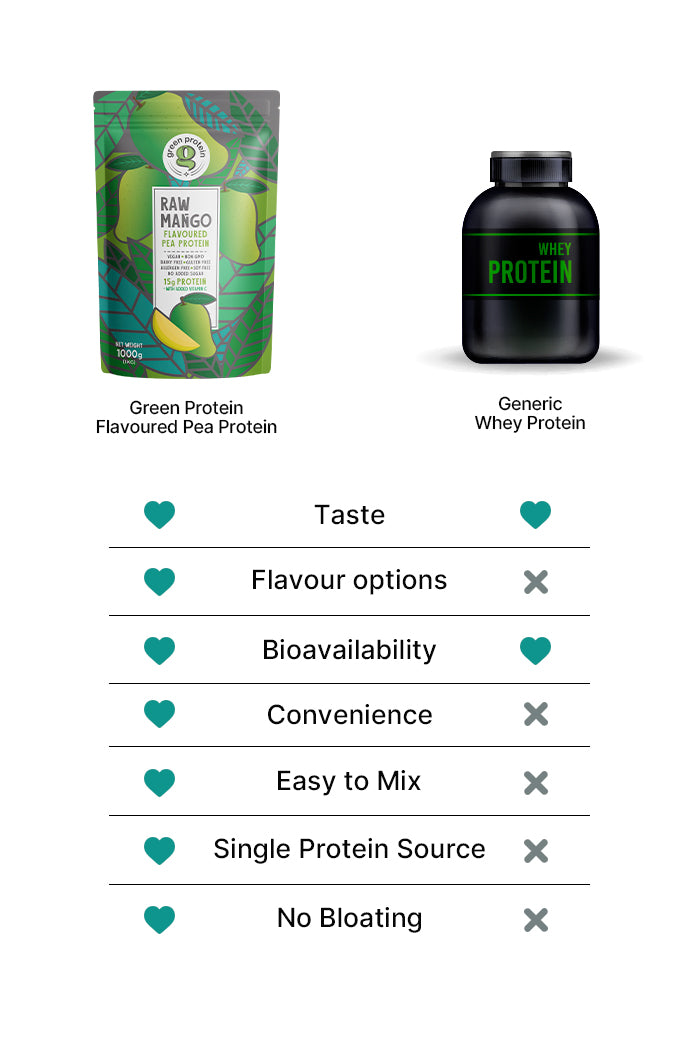 However, compared to other plant-based protein options, Green Protein stands out for its superior quality. Most other brands, use a blend of multiple protein sources, resulting in a chalkier texture and poor absorption or bioavailability. Green Protein utilizes Canadian Pea Protein Isolate, known for its easier digestibility and higher absorption rates. Although you may notice a slight difference in texture compared to traditional proteins, rest assured that Green Protein prioritizes taste and efficacy. For optimal results, mix it with cold water and consume immediately. Plus, with Green Protein, you won't experience the bloating often associated with other protein supplements.
