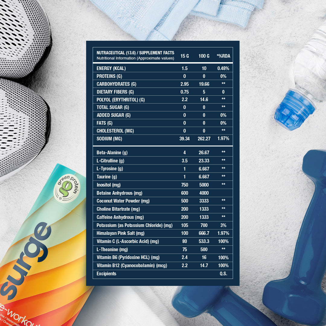 If you're aiming to push your limits and get the most out of your workouts, a pre-workout like Surge might be just what you need. Surge Pre-Workout is crafted to enhance endurance, improve focus, and support muscle pump, ensuring you stay energized and motivated throughout your session. With zero sugar and just 1.5 calories per serving, it provides a clean boost without adding extra calories. Plus, the convenient sachets make it easy to take with you wherever you go.