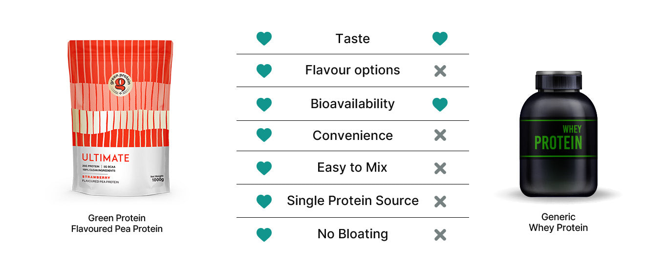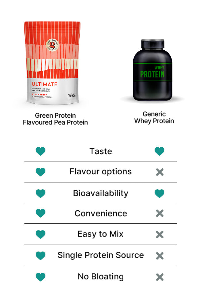 Green Protein's focus on single-source pea protein isolate sets it apart. This translates to superior bioavailability (93%) and a PDCAAS score of 0.93, rivalling whey protein for results while remaining true to vegan principles. In contrast, many plant protein blends rely on combinations of pea, rice, and other sources, often leading to lower bioavailability (65-70% only) and potentially less optimal results. Green Protein's Sport & Ultimate options are excellent for muscle building and intense physical activity due to this higher protein absorption.