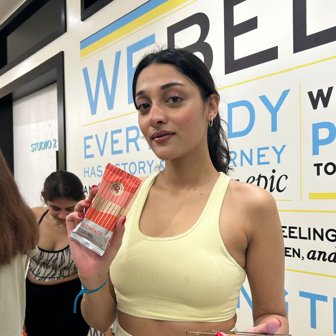 ULTIMATE, as the name suggests, is the GOAT* of our offerings. With 25g of protein, Monk fruit sweetener, and natural flavours, it's a step ahead. Enhanced with 20 essential Vitamins and Minerals, Prebiotics, and Omega 3s, Ultimate is more than just protein—it's the complete wellness solution in a shake.