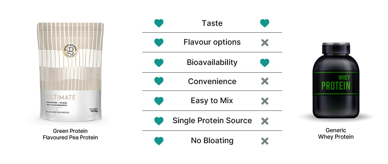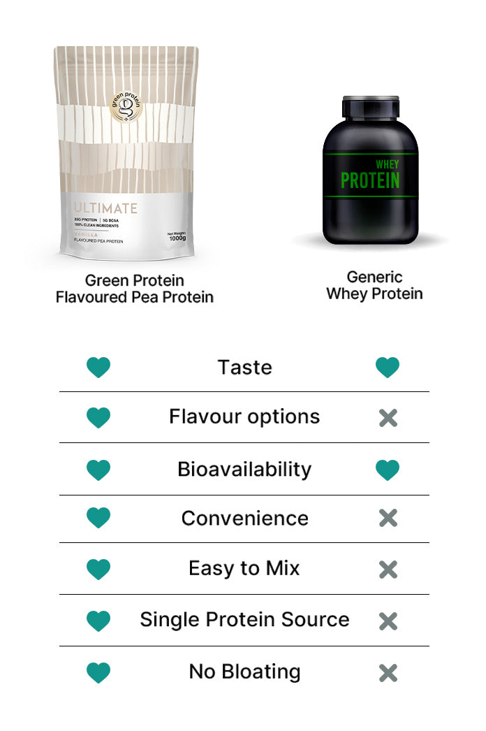 However, compared to other plant-based protein options, Green Protein stands out for its superior quality. Most other brands, use a blend of multiple protein sources, resulting in a chalkier texture and poor absorption or bioavailability. Green Protein utilizes Canadian Pea Protein Isolate, known for its easier digestibility and higher absorption rates. Although you may notice a slight difference in texture compared to traditional proteins, rest assured that Green Protein prioritizes taste and efficacy. For optimal results, mix it with cold water and consume immediately. Plus, with Green Protein, you won't experience the bloating often associated with other protein supplements.