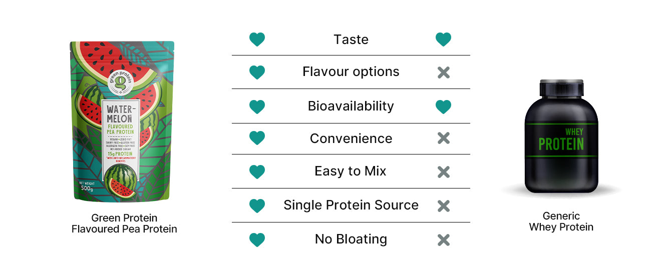 However, compared to other plant-based protein options, Green Protein stands out for its superior quality. Most other brands, use a blend of multiple protein sources, resulting in a chalkier texture and poor absorption or bioavailability. Green Protein utilizes Canadian Pea Protein Isolate, known for its easier digestibility and higher absorption rates. Although you may notice a slight difference in texture compared to traditional proteins, rest assured that Green Protein prioritizes taste and efficacy. For optimal results, mix it with cold water and consume immediately. Plus, with Green Protein, you won't experience the bloating often associated with other protein supplements.